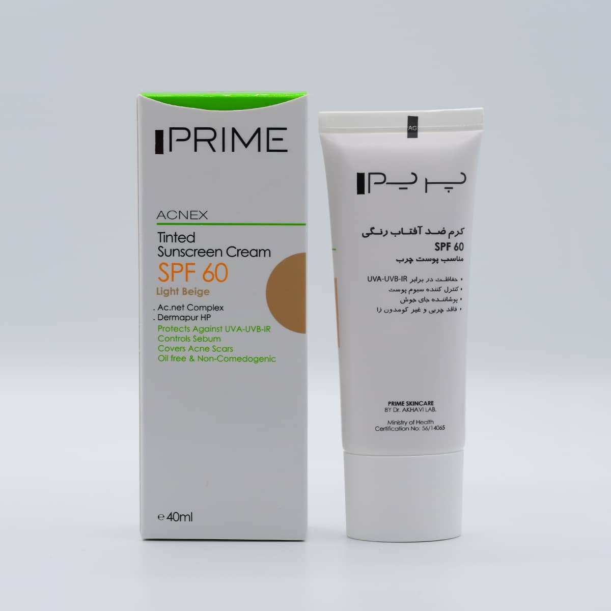- کرم ضد آفتاب پریم SPF60 فاقد چربی، با پوشانندگی بالا